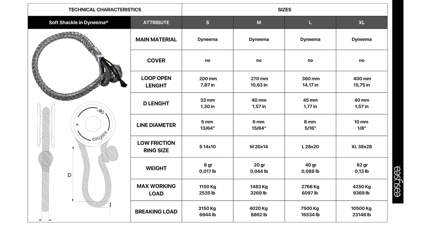 Naš Soft Shackle v Dyneema® je izjemno lahek in odporen tekstilni obroč, izdelan iz 100 % Dyneema materiala podjetja Gottifredi Maffioli — najvišje kakovosti na trgu. Ima 12-stransko pletenje za različico 3 mm in 16-stransko pletenje za različico 6 mm. Ti obroči so ročno izdelani in zasnovani za ustvarjanje močnih, vsestranskih in lahkih tekstilnih povezav.